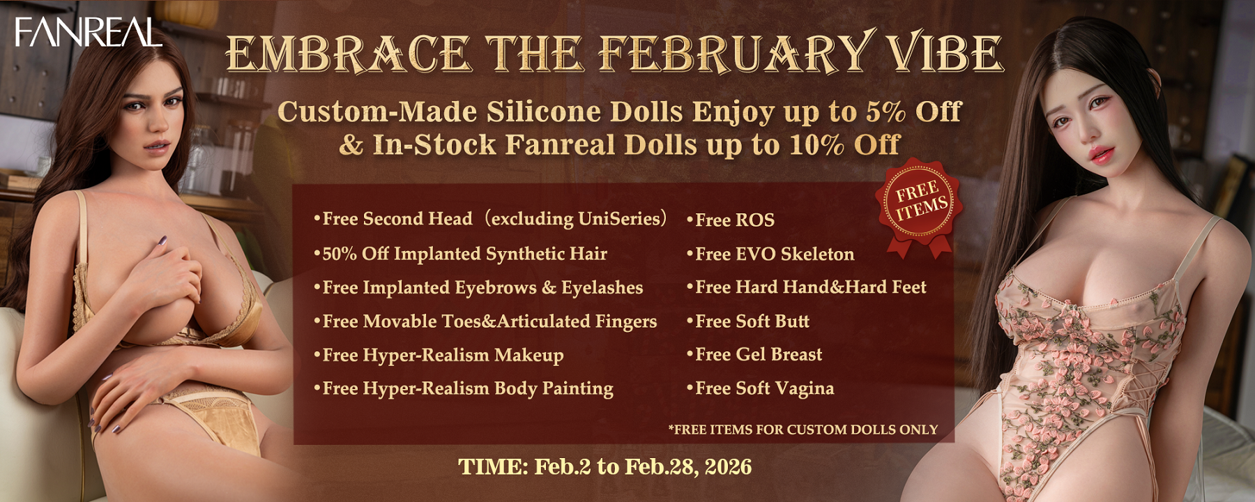 🎭 Purchase any full-body Silicone doll and receive an additional ROS MAX head at no cxtra cost.